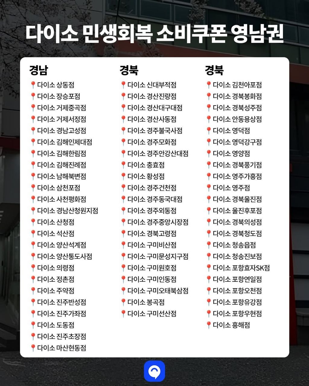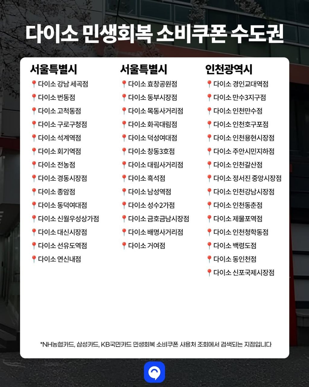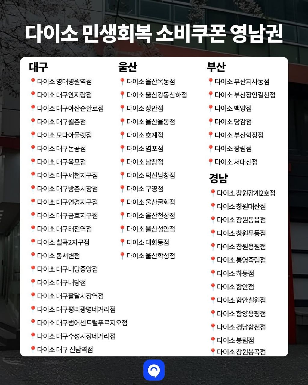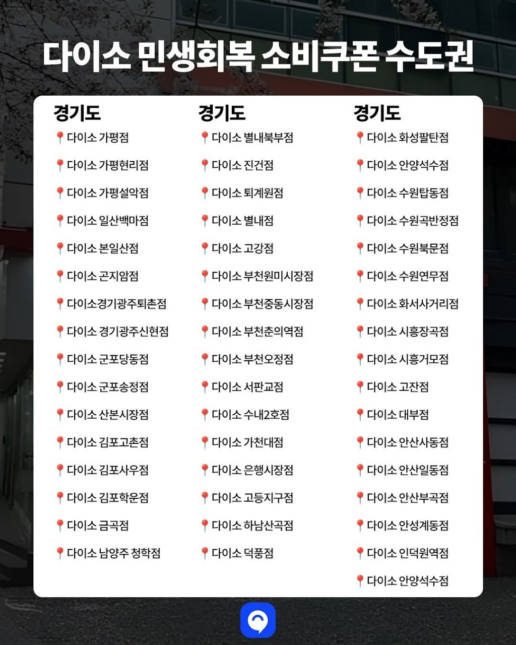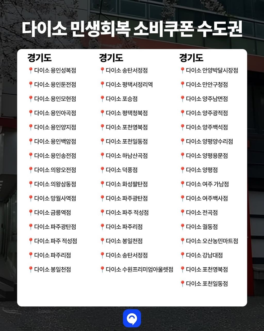 재작성: 다이소 매장 소비쿠폰 사용 가능한 지점 리스트